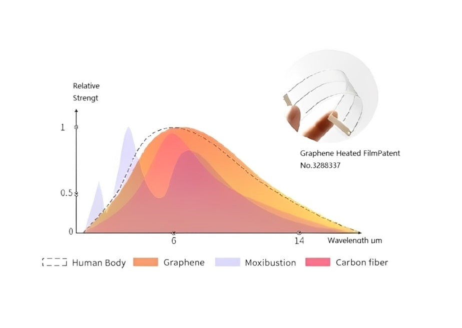 After being tested by the National Infrared Center, the infrared spectrum emitted by the graphene heating film is similar to that of the human body. The energy is highly concentrated in the far-infrared band ranging from 6 to 14 μm, making it more easily absorbed by the human body.